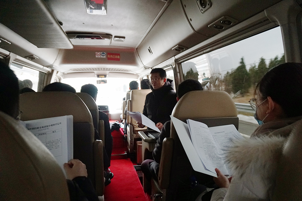 在前往觀摩現場途中,集團綜合部副部長安少帥向市委組織部、市財政局和集團領導詳細介紹本次觀摩活動的行程安排。