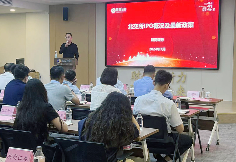 浙商證券煙臺營業(yè)部總經(jīng)理王鵬圍繞北交所IPO最新政策及投融資概況展開交流分享。他通過成功上市案例的分析,講解了上市規(guī)律、上市邏輯以及如何降低上市財務(wù)成本和時間成本、規(guī)避上市失敗風(fēng)險等方面內(nèi)容。